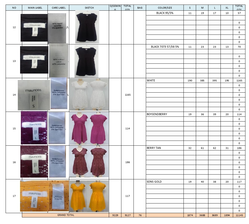 PACKING LIST STOCK MAURICES"GRADE A" 2108812