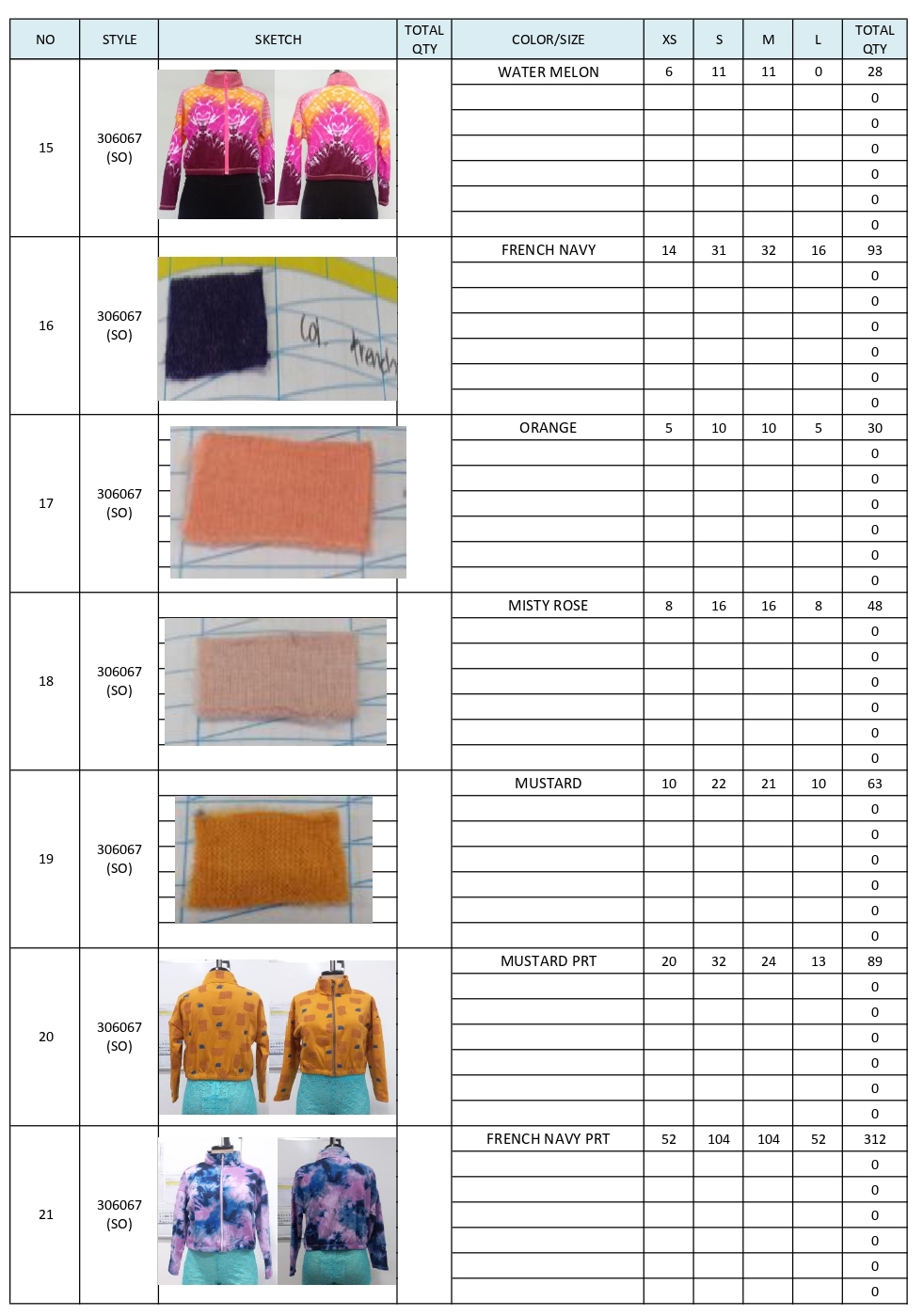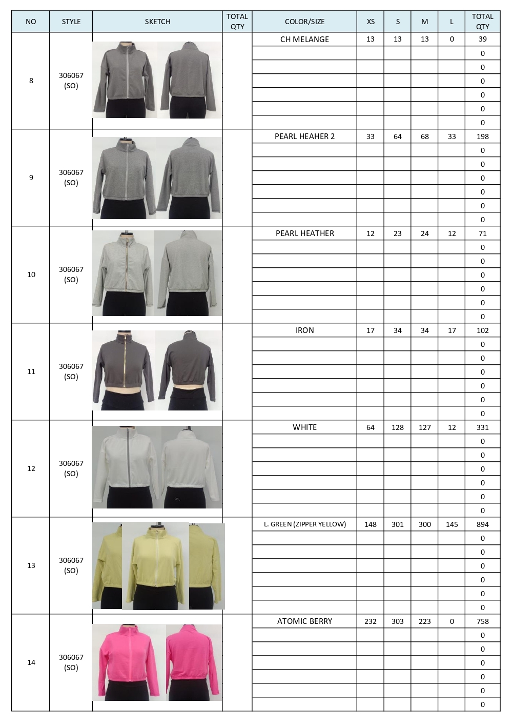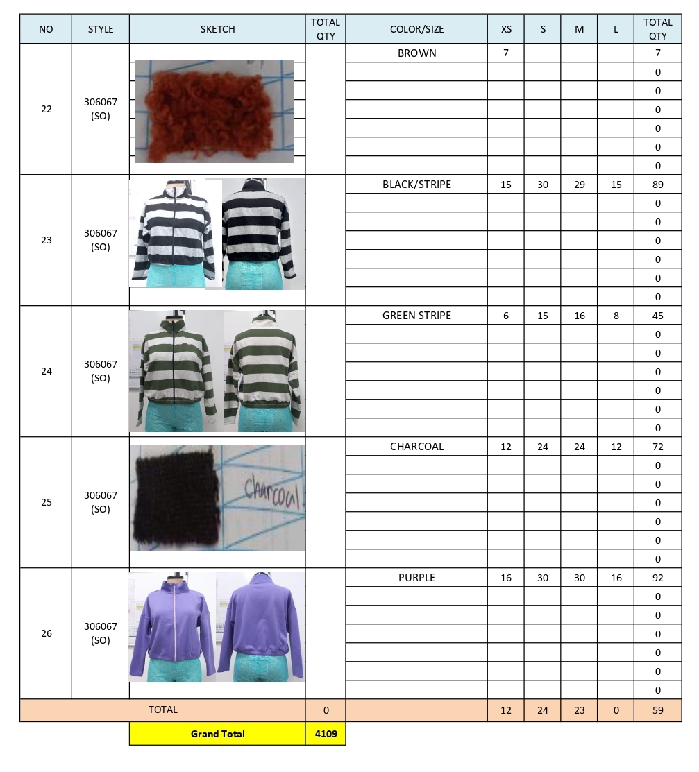 PACKING LIST STOCK JUSTICE JACKET