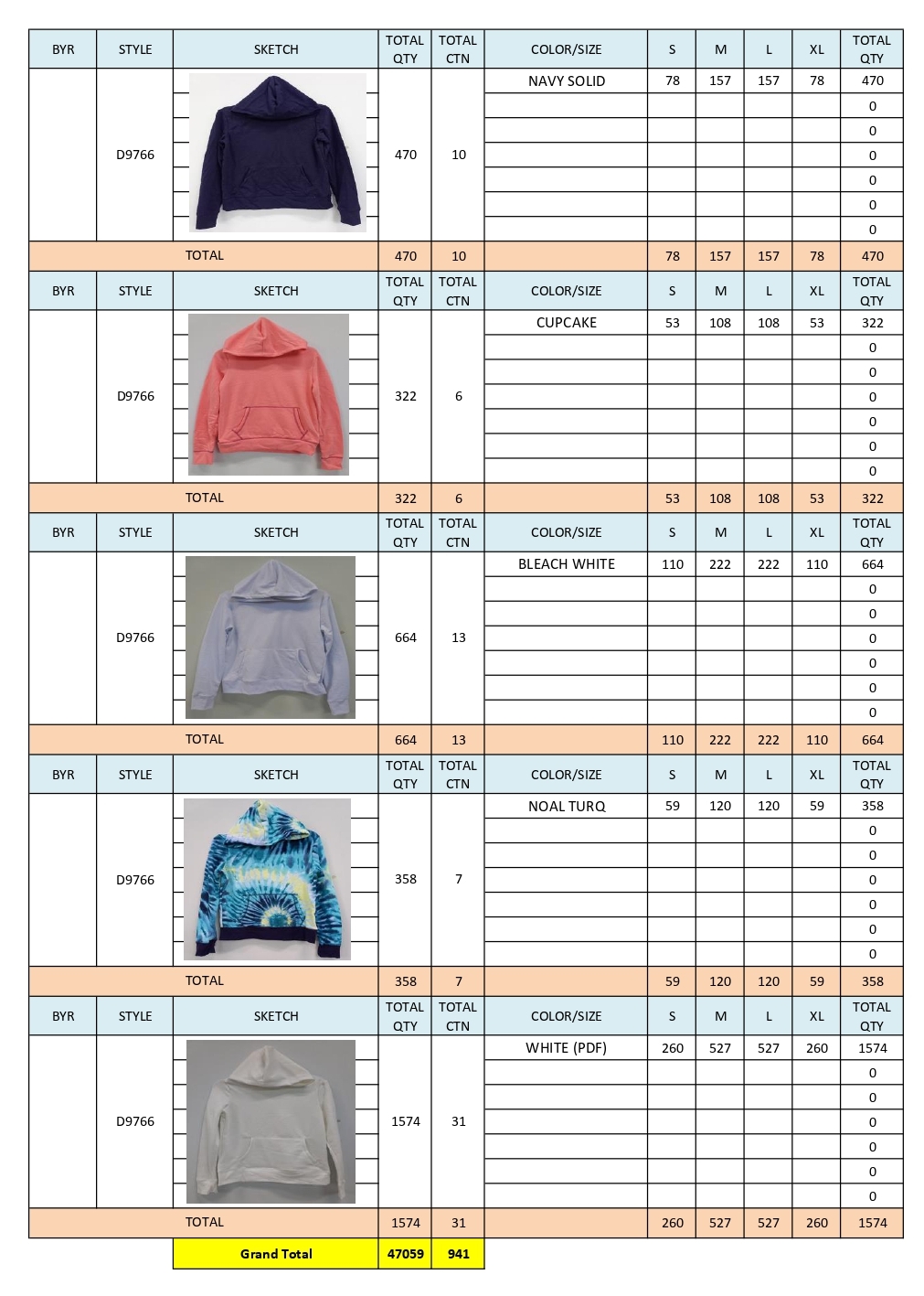 PACKING LIST STOCK S# D9766